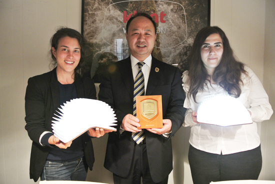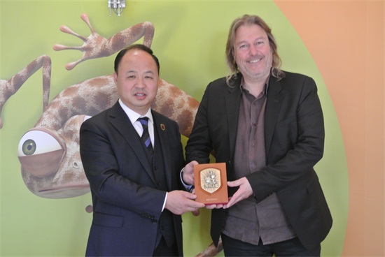 郑立国董事长、校长与蒂姆图动画公司首席执行官古劳米·荷鲁伊合影