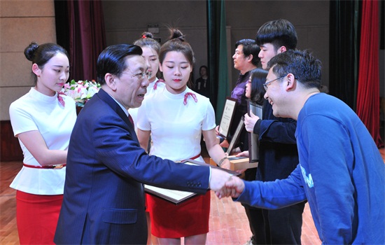 常务副校长胡维革为获得一等奖的个人颁奖(刘庆发 摄)